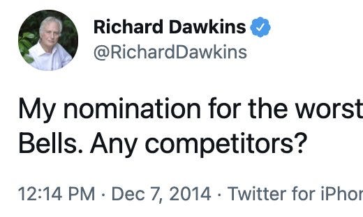However, the article misses a key point: I would guess one of the reasons the vandals act this way is because the churches either reject their legitimate criticism entirely or give them no other venue in which to express their frustrations. If there’s no hope for reform on matters of civil rights or bodily autonomy, because certain despicable beliefs are written in holy stone, then the church is sending a clear message that critics must resort to more drastic measures to be heard. Without addressing that, I worry the vandalism won’t stop.I’m not even complaining here. I just question Richard Dawkins’ taste in everything,