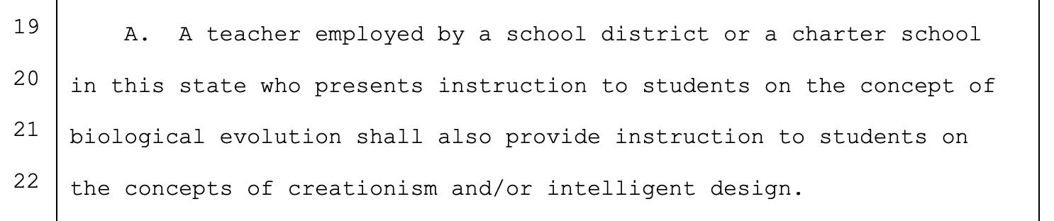 In any case, notice how Bullard acts like there are only two options for how life began: Evolution… and the Christian fairy tale. There’s no room for anything else, including other religious views. That’s how you know this is a bad-faith piece of legislation. It’s not like he’s citing scientists who say there are other possibilities. He’s just acting like if there are any gaps in our understanding of evolution, Christianity must fill it.
