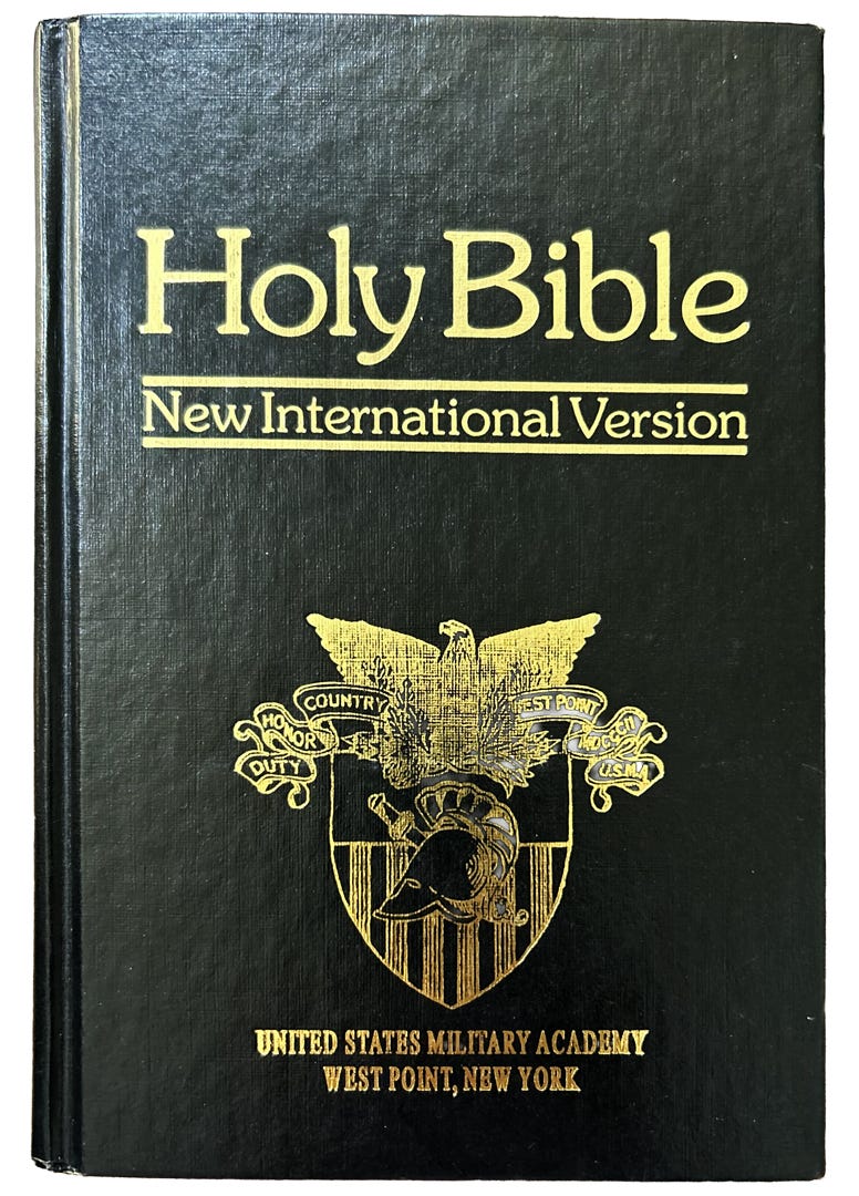 (As far as I can tell, the crest does not appear on copies of any other holy book at West Point.)