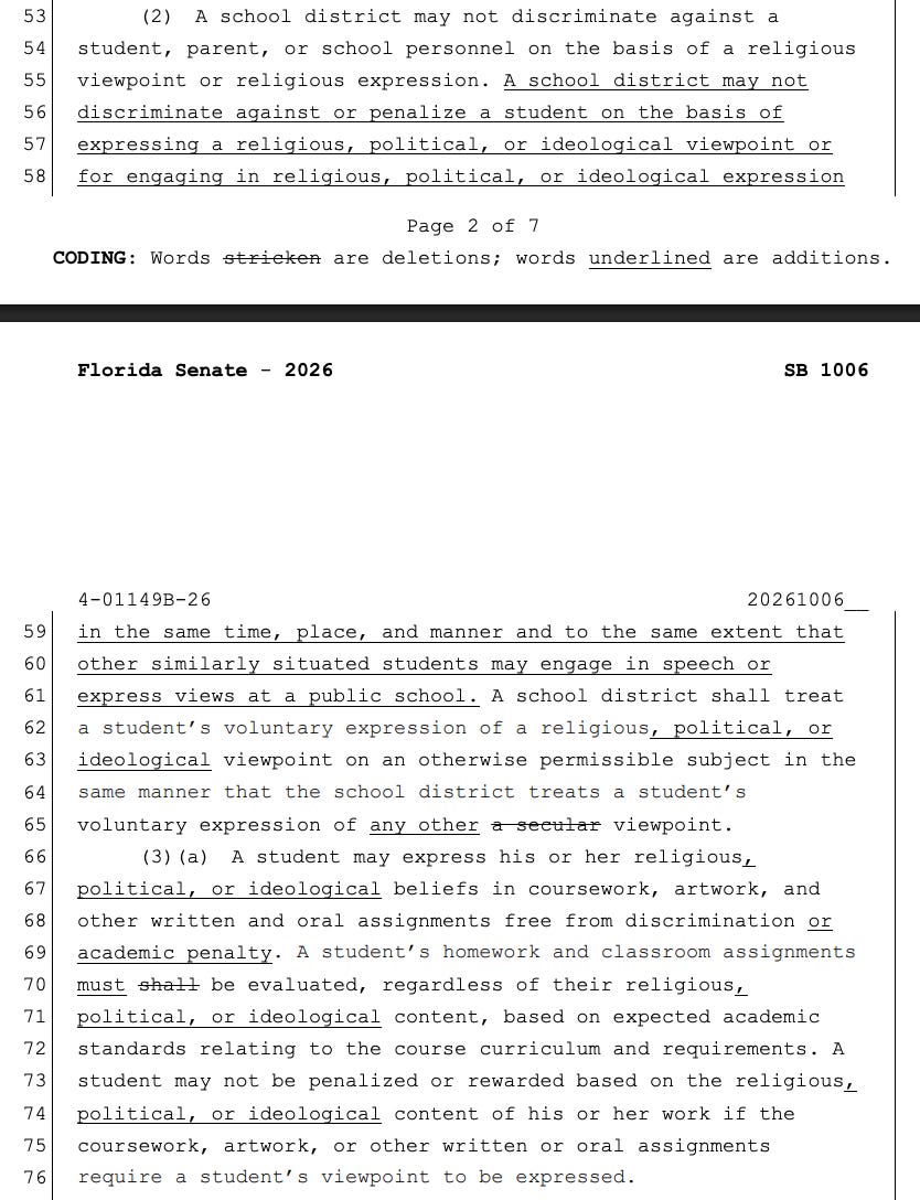 Just wait until a non-Christian/nonbelieveing student decides to pull a Fulnecky. Will Florida give them the same protections?