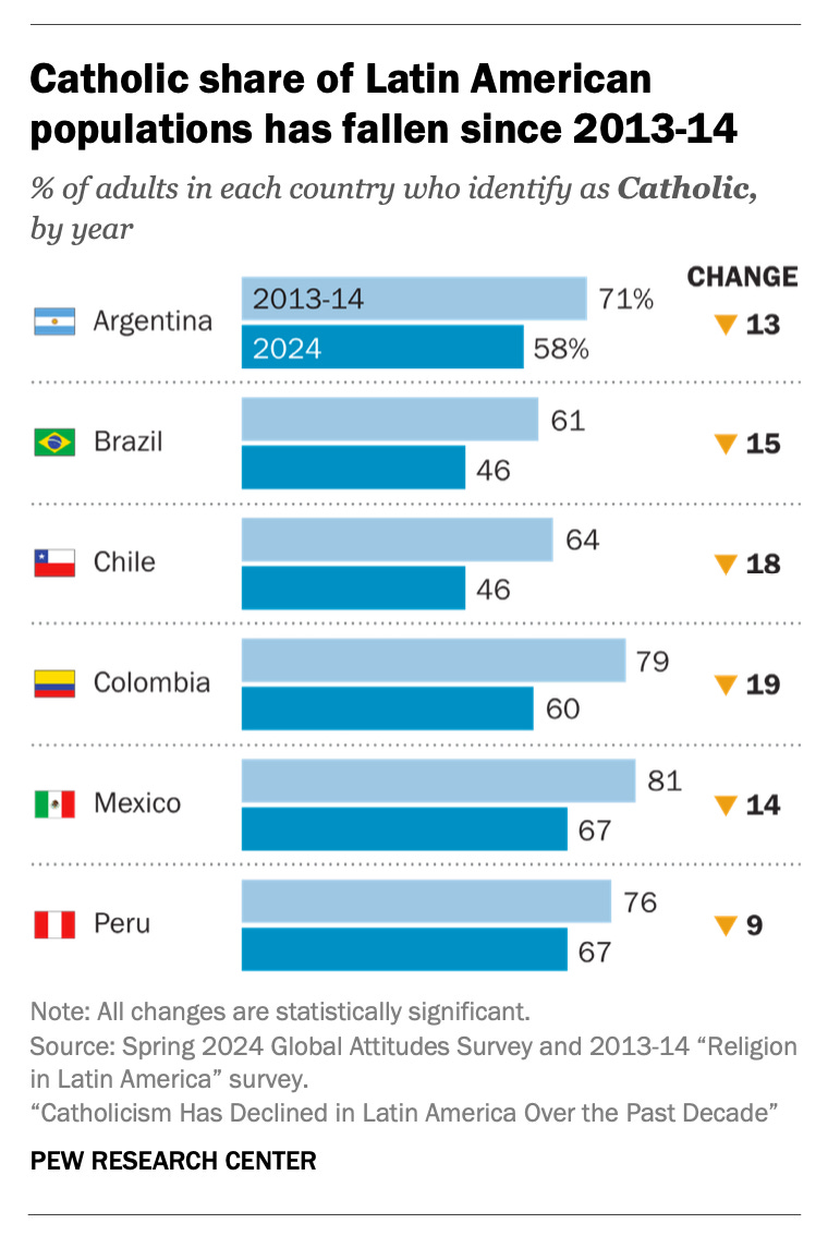 To add some color to the statistics, a few years ago, I was speaking with a cab driver in Guatemala who confirmed that no one goes to the Catholic Church anymore because "they don't care about us". If a comment like that doesn't wake you up, nothing will.