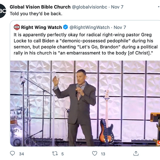 If anything, I worry that it might generate sympathy for Osteen because it looks like he stopped whatever he was doing to take a quick video with someone he probably assumed was a fan - which is a nice gesture! - only to have that used against him.Speaking of Osteen, here’s Greg Locke spreading a new conspiracy about him during a church service.