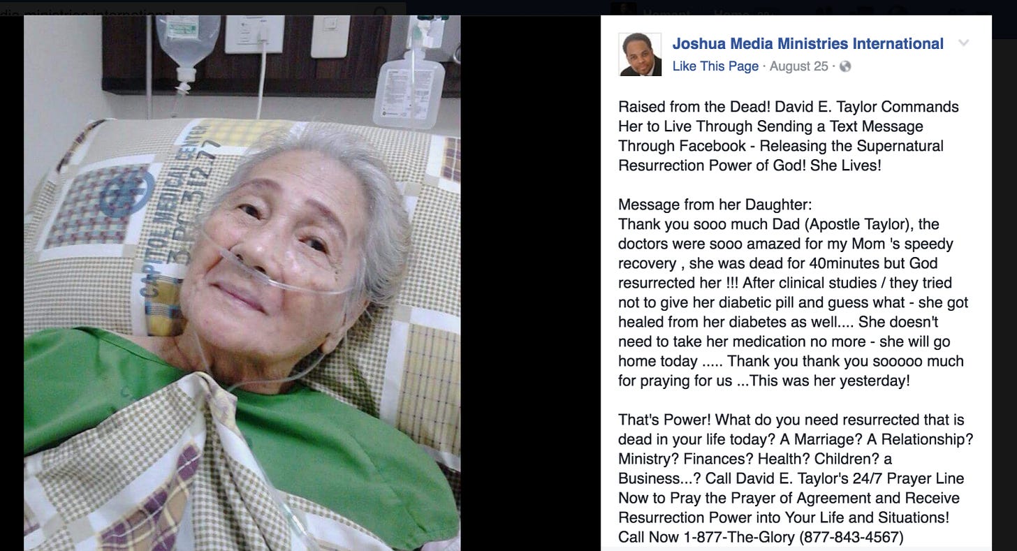 For example, in 2016, Taylor claimed he resurrected a woman from the dead… by sending her a message on Facebook.