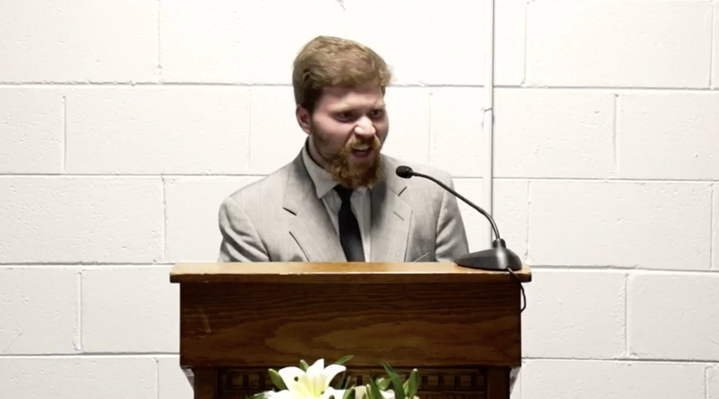 He’s honestly not even a good speaker. He struggled to get those words out. The other New IFB preachers have similar public speaking problems. They think being loud grants them more authority. They think being as extreme as possible makes them better Christians. They ignore nuance because there’s no room in their congregation members’ brains to handle it.