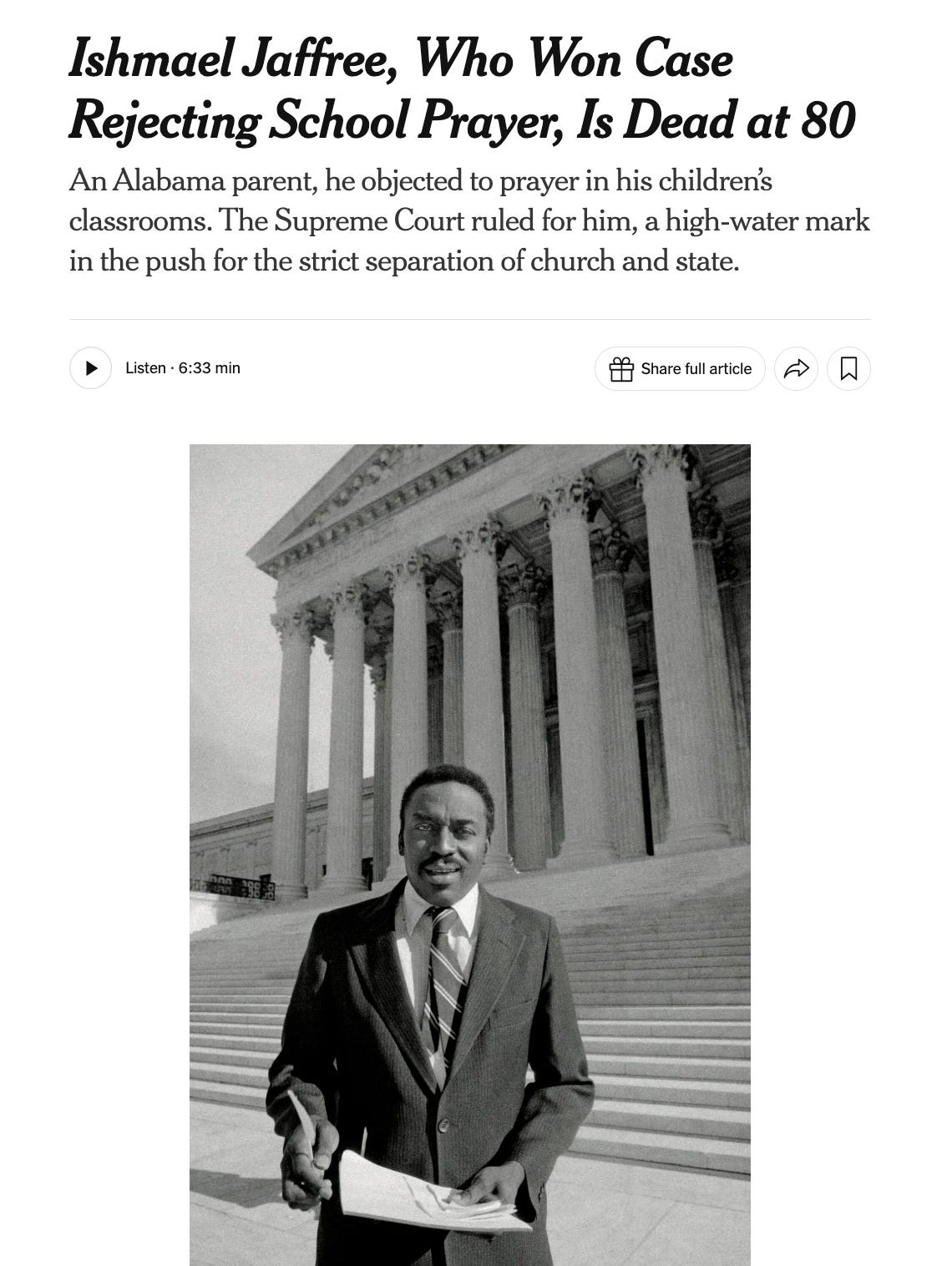 How we could use Jaffree today. Christians continue to push for school prayer, violating Jesus' admonishment against praying in public.