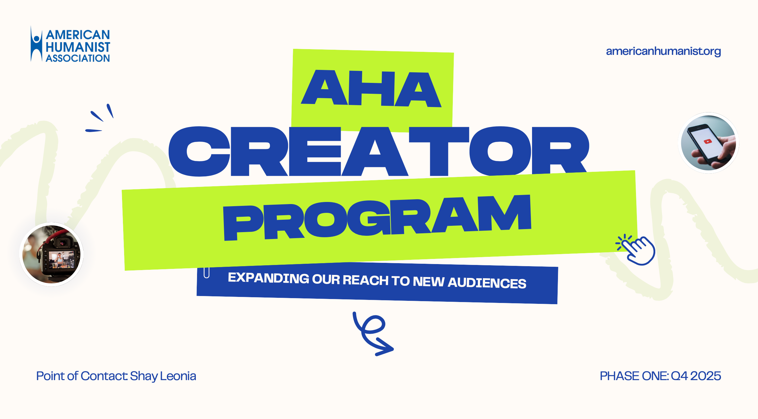 The American Humanist Association soft-launched this program in September. They paid certain content creators to make videos talking about current news stories or their own paths to Humanism. They didn’t announce this because they were working out the kinks, figuring out what the best practices ought to be, etc.
