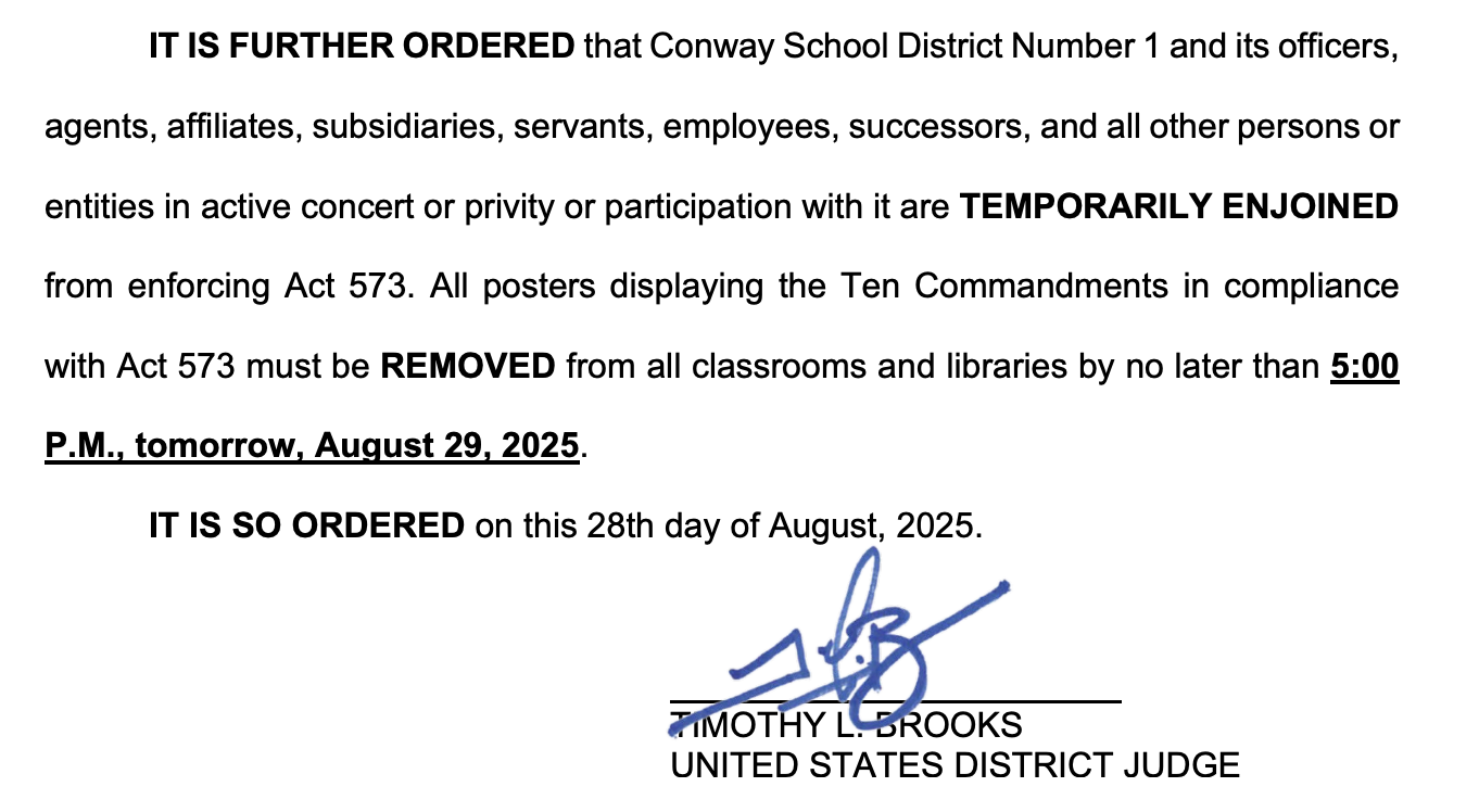 Judge orders Arkansas school district to remove illegal Ten Commandments posters