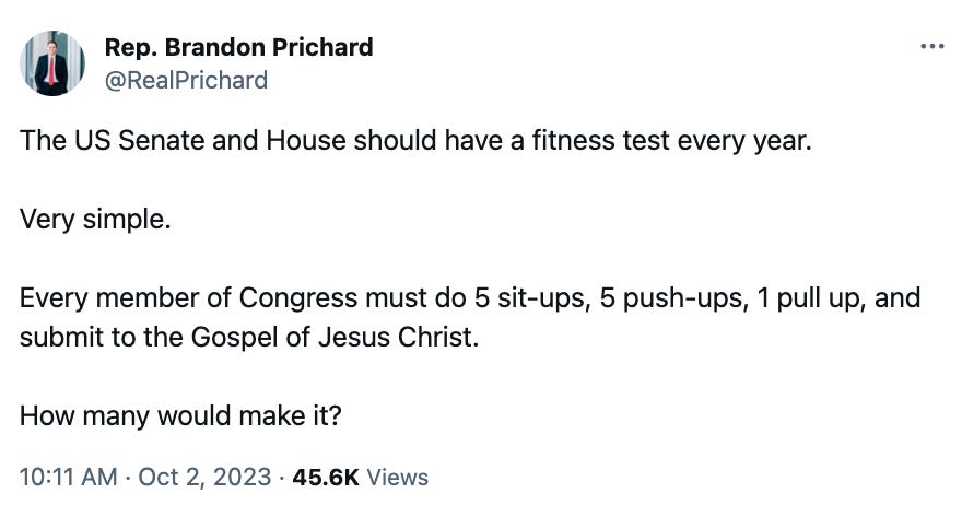 It’s a hell of a way to say Congress needs a No Jews Allowed policy, but that’s what Prichard wants. Ditto with Muslims, atheists, and even progressive Christians (who don’t really count in his mind).
