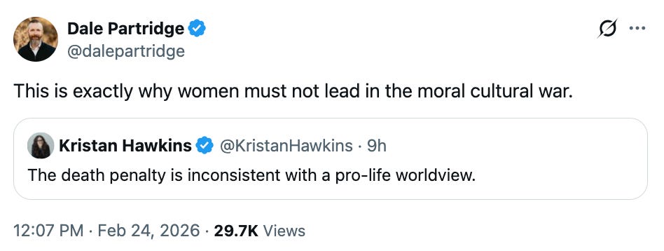 Incidentally. when one leader of the anti-abortion movement pointed out the hypocrisy of using the death penalty to advance a “pro-life” agenda, she was met with these words from a Christian Nationalist pastor: