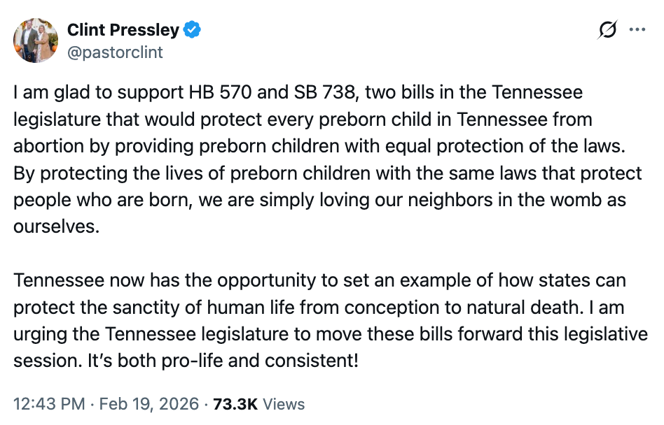 Clint Pressley, president of the Southern Baptist Convention, was thrilled by the opportunity to murder women who have abortions: