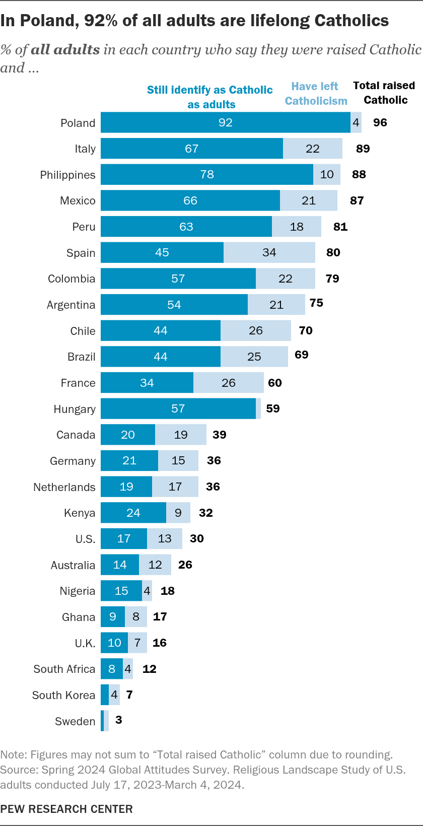 It would be interesting to see the statistics for Islam around the world, too. Muslim communities are surely more close-knit than Catholic ones with more pressure to stay at least nominally within the faith.