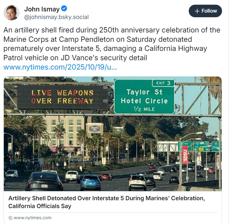 This has been the pattern Trump and his flunkies have used to date. They indulge in gross hyperbole in attempts to smear his opposition, trying to cast us as foaming-at-the-mouth radicals, when it really is the right wing that's been acting the craziest. This is why the No Kings protest today absolutely MUST BE PEACEFUL. We can't let any untoward incidents fall on our side of the ledger, and any problems coming from Trump's Gestapo must be recorded and posted or streamed (and as SAFELY as possible!).
