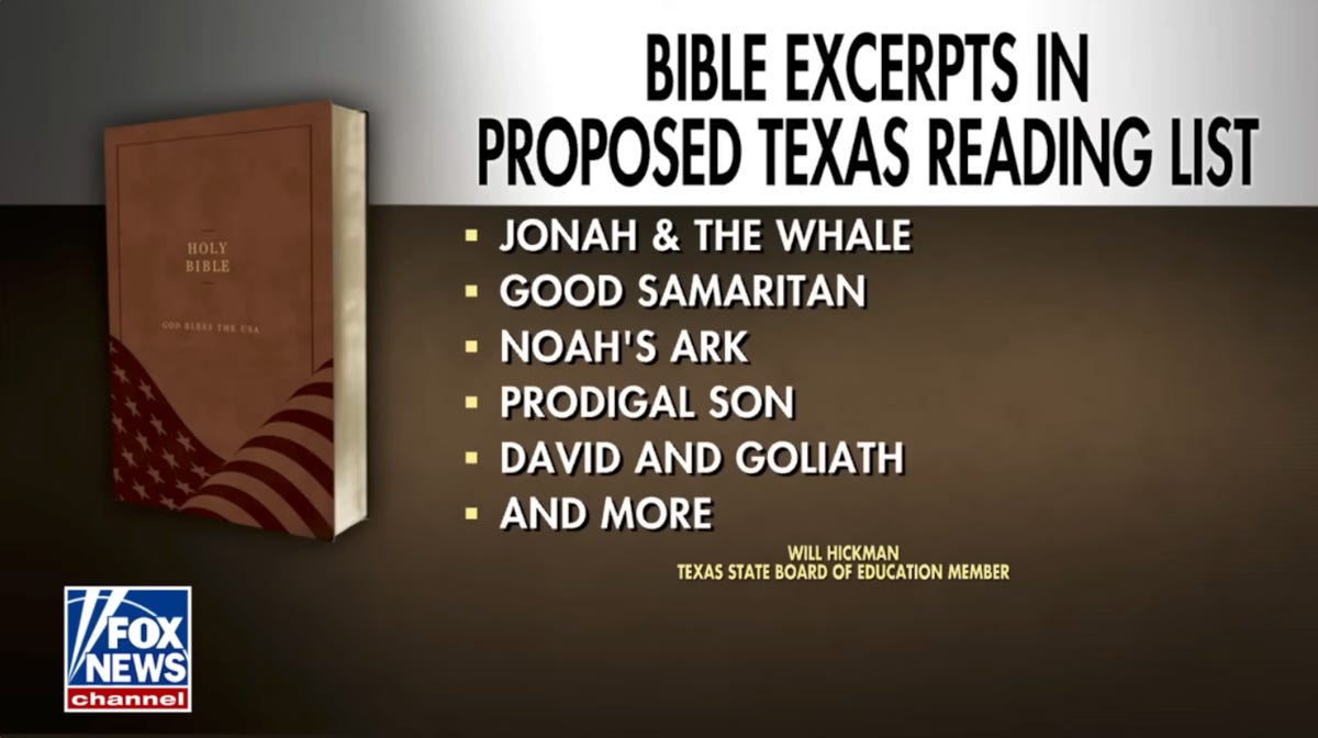“This list represents another step by the state toward turning public schools into Sunday schools that undermine the right of parents to direct the religious education of their own children,” said Carisa Lopez, deputy director of the advocacy group Texas Freedom Network, in a statement Wednesday.