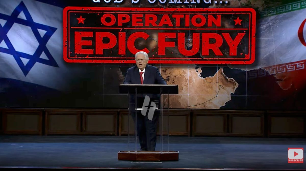 If you’re John Hagee, the firebrand preacher behind the non-denominational Cornerstone Church in San Antonio, Texas, you air a literal pro-war infomercial right before the start of your “Epic Fury”-themed sermon.