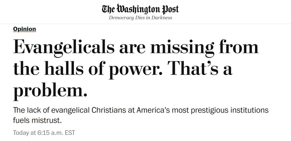 By the way, the much-worse original headline for the story, caught by Word&Way editor Brian Kaylor, was “Evangelicals are missing from the halls of power. That’s a problem.”