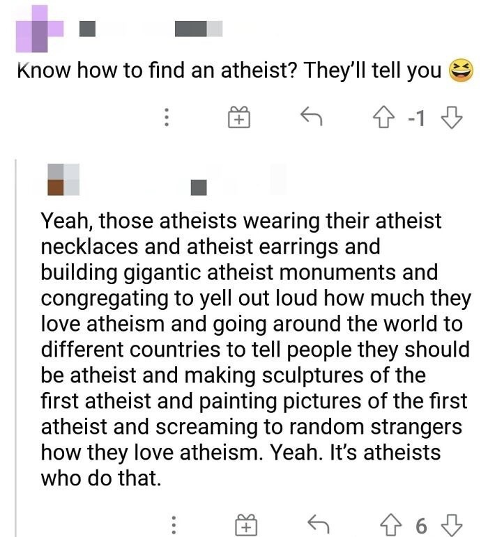 Yes the dipshits that claim atheism "is a religion" amuse me, it literally means no deity!