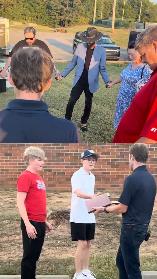 This past Friday, before the football team played its next game at nearby Montgomery Central High School, Campbell and a handful of community members met up outside the field for “Friday Night Lights of Faith”—a prayer circle meant to honor Campbell’s fake sacrifice—while passing out Trump Bibles to passersby. (Campbell didn’t participate in the latter.)