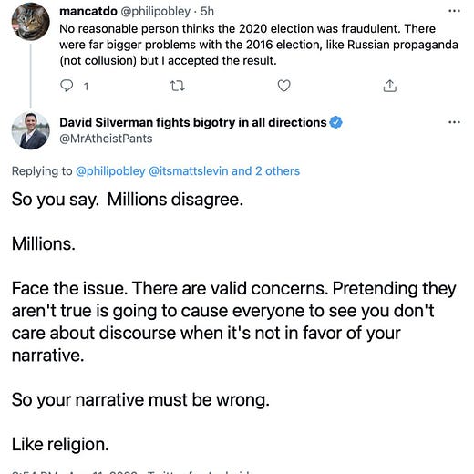 That tweet involves a back and forth between Skeptic’s Michael Shermer and writer/philosopher Aaron Rabinowitz, who was writing a defense of “Critical Race Theory” for the magazine until he argued that part of the problem was that the “moral panic” against CRT was coming from people not generally known as extremists… like Shermer himself.