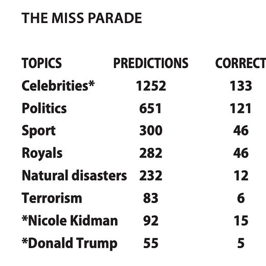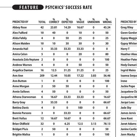 I know it might seem futile to grade the predictions of psychics, but this extensive attempt to do so by the Australian Skeptics makes for a fascinating read.